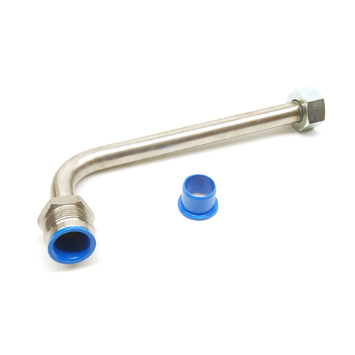 Tubo coletor tipo L, em aço inox, para funil por gravidade ou tanque